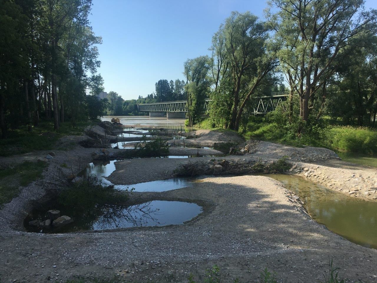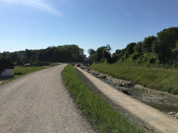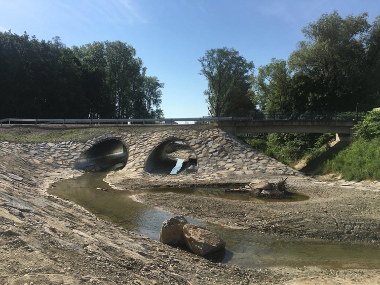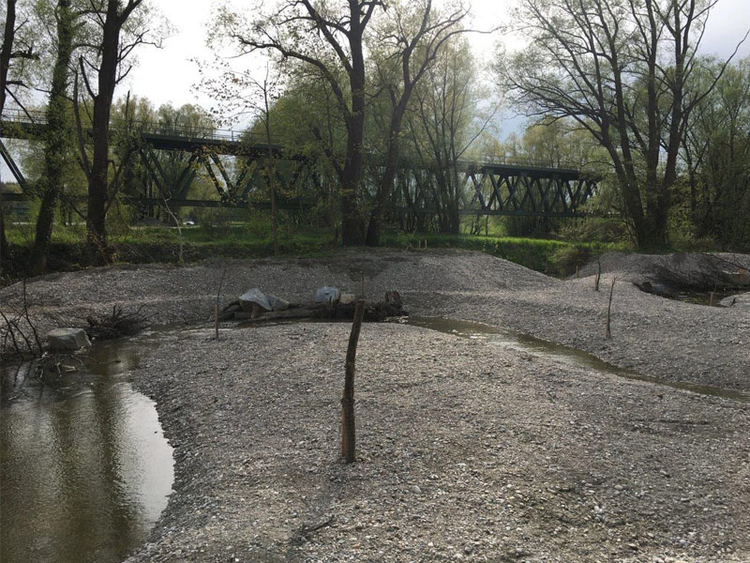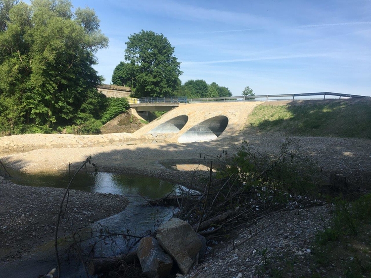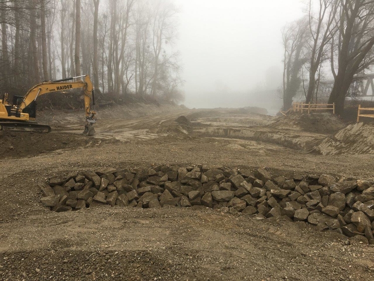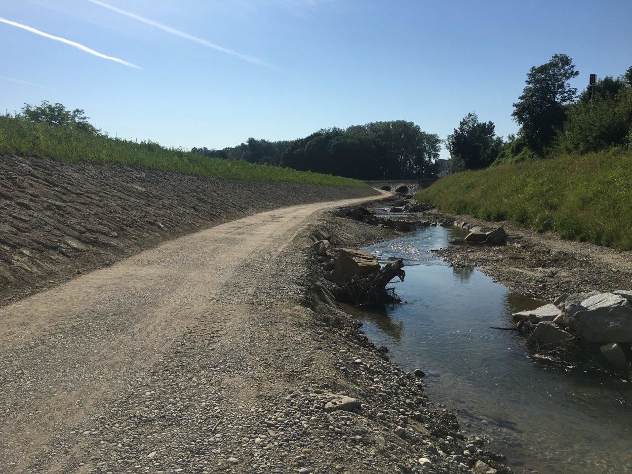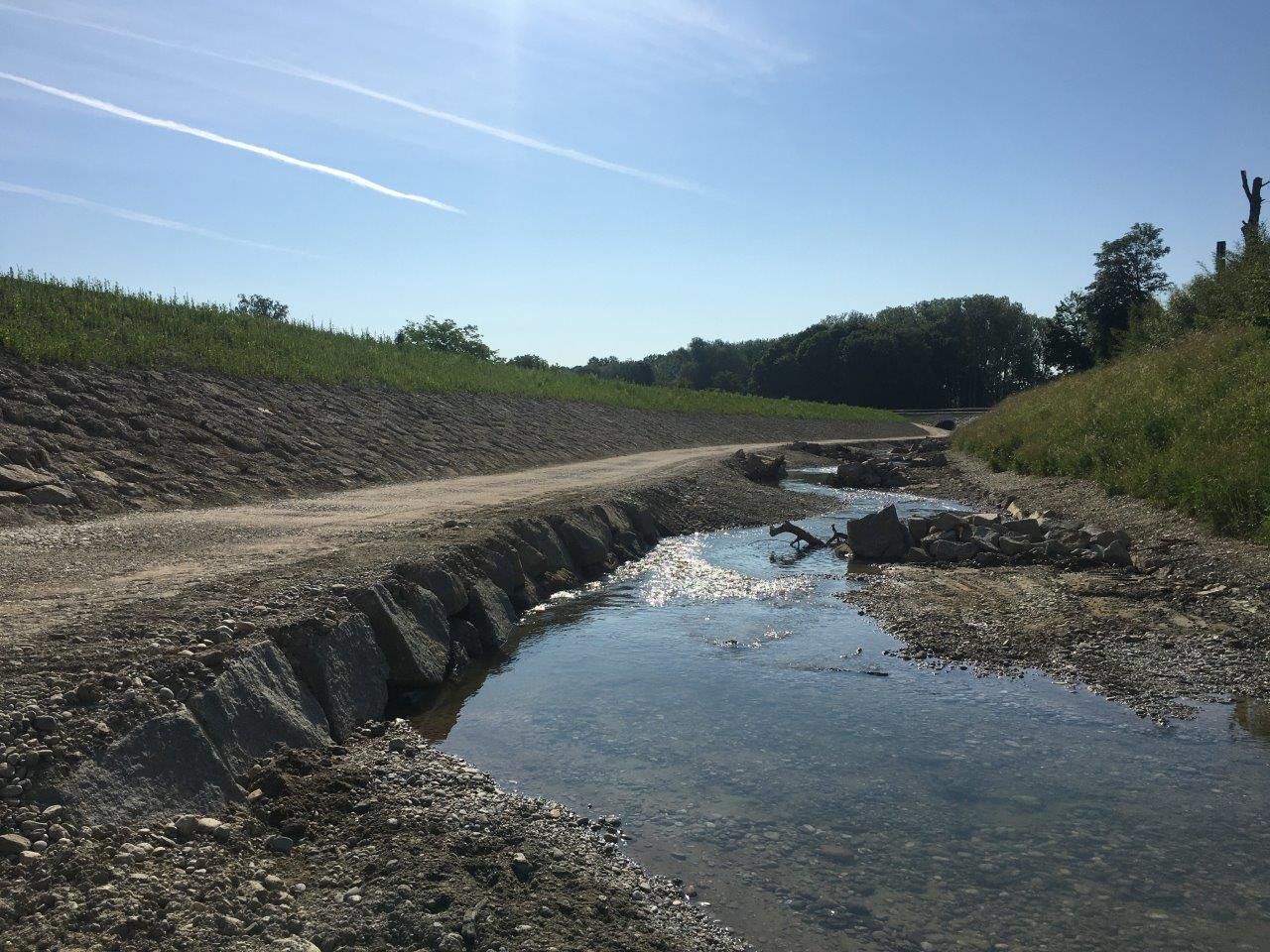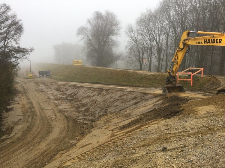 Aufbauend auf diesen Ergebnissen wurde die Planung und Verbesserung des Hochwasserschutzes durchgeführt. Der betroffene Bauabschnitt wird durch Rückversetzung des bestehenden Dammes aufgeweitet, der Durchfluss durch zwei Wellblechdurchlässe erhöht und die Kerndichtung des Dammes mittels einer Dichtwand (Bodenvermörtelungsverfahren) hergestellt.