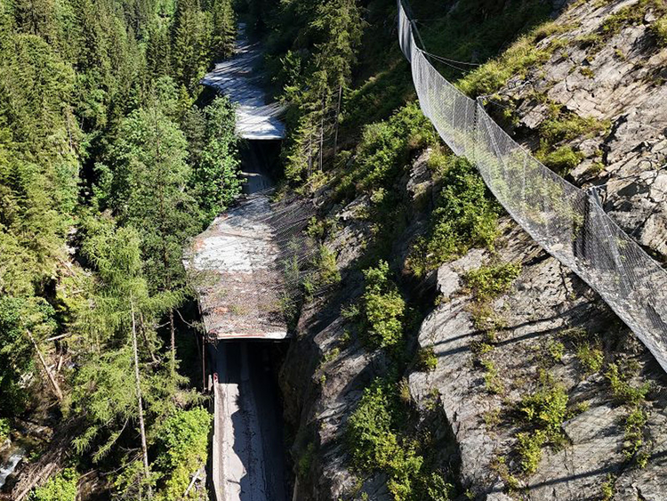 Das aktuell noch (zum Teil) bestehende „Steinschlagschutzdach II“ wurde im August 2021 durch einen massiven Windwurf/Steinschlag teilweise zerstört. Der zentrale Teil wurde aufgrund dessen abgebrochen, wodurch noch ein nördlicher und ein südlicher Teil dieser Steinschlagschutzdach-Anlage stehen geblieben ist. Diese sollen nun abgetragen werden.